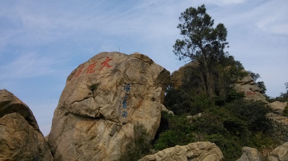 這是一艘鐵板船,船的寬度大約只能并排橫放兩張辦工桌,長度略長于常見的集裝箱卡車,對于大海而言,這是非常小的船了。船頭是一個(gè)小小的甲板,中間是下陷的船艙,船尾小小的甲板上立著一個(gè)小小的駕駛艙。整個(gè)船斑駁不堪,似乎跟船老大一樣年老了。那對情侶坐于船頭,駕駛臺(tái)前的小甲板上放置著一個(gè)只有大拇指和食指撐開距離高度的小條凳,我們四個(gè)就并排坐在這里。機(jī)器 “突突”的轟鳴聲中,船緩緩的向大鹿島出發(fā)了。船行了一段距離,看見海面上有霧氣升騰,霧氣不是很高,似乎恰恰遮擋住視線,很遠(yuǎn)的海平面是看不清的,稍遠(yuǎn)處的海島、陸地上的山、漁船也都在霧中影影綽綽,似在仙境了??上а赝径际菧\海,又正值小潮,海水是泥漿般的渾黃,并沒有見到蔚藍(lán)的模樣。迎著風(fēng),船兒兩側(cè)帶起泛著白色泡沫的低低的“人”字形浪花,忽高忽低地行進(jìn)。孩子們歡聲笑語,我和妻子瞇著眼享受著搖籃般的搖晃。約莫過了一個(gè)小時(shí),滿眼蒼綠的大鹿島已經(jīng)在眼前了。
