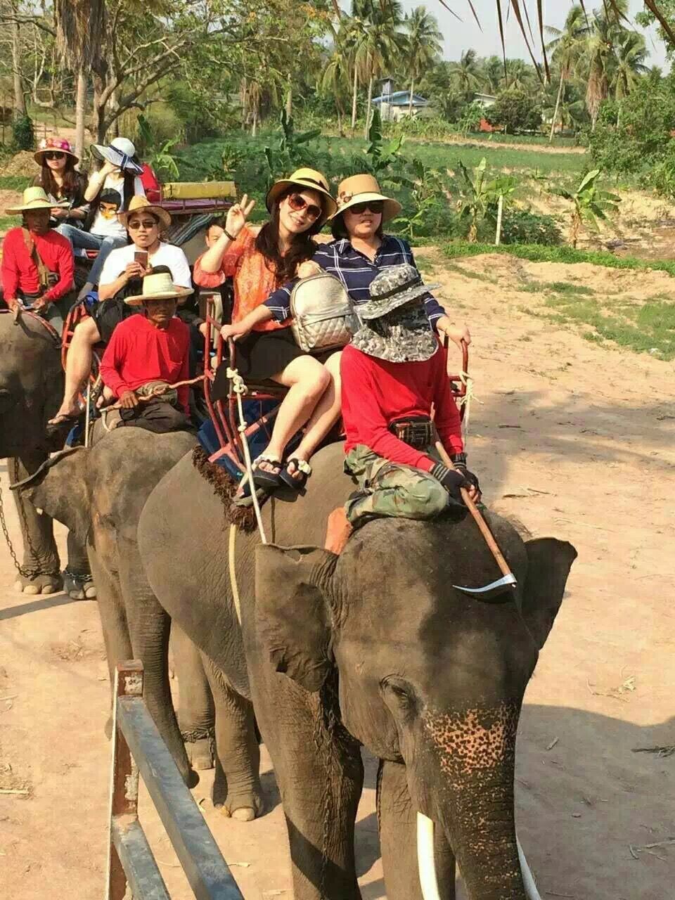 第一天早上七點(diǎn)鐘,大家搭乘旅游大巴前往寧波機(jī)場,一路上歡聲笑語,甚是融洽!中午12:30,航班準(zhǔn)時(shí)起飛,經(jīng)過長達(dá)四個(gè)半小時(shí)的飛行到達(dá)曼谷廊曼機(jī)場。一出機(jī)場,熱情的泰國妹子為我們戴上鮮花,并對我們說一句“薩瓦迪卡”,意為祝福平安。隨后當(dāng)?shù)氐膬晌粚?dǎo)游帶領(lǐng)我們分別上了兩輛大巴,經(jīng)過近一個(gè)小時(shí)的車程,我們到達(dá)第一站——暹羅夢幻劇場,在這里我們和大象合影,并欣賞了泰國獨(dú)特的民族風(fēng)情舞蹈。之后,進(jìn)入泰國規(guī)模最大的宏偉華麗劇院觀賞世界級的泰國藝術(shù)和文化遺產(chǎn)表演,深入地了解泰國四個(gè)朝代和各個(gè)部域民村的“泰國農(nóng)村”生活、傳統(tǒng)、文化以及藝術(shù)和手工藝。