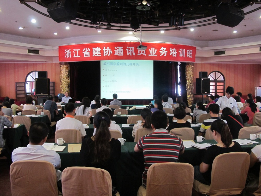 培訓班還邀請了浙江省企業(yè)報刊協(xié)會會長劉和平和《建筑時報》采編通聯(lián)部副主任徐列分別就寫作技巧和攝影知識作了培訓講座。劉會長從“倒金字塔、初中語文寫作、用事實說話”這三條原則闡述了寫作的技巧,用一個個實例引出了新聞標題和導語的寫作關(guān)鍵、語言文字應(yīng)用的規(guī)范和用事實說話的重要性?!督ㄖr報》徐主任通過對作品的分析,詳細講解了人物、會議、景物等攝影要點,為學員們講授了新聞攝影的特點、攝影的技巧等知識。此外,中天建設(shè)、長城建設(shè)等五家優(yōu)秀企業(yè)報刊的負責人也作了經(jīng)驗交流。