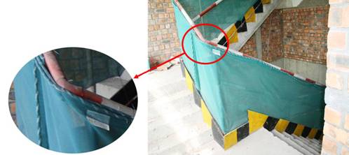 5、樓梯防護欄桿定型化,踢腳板設(shè)置到位。