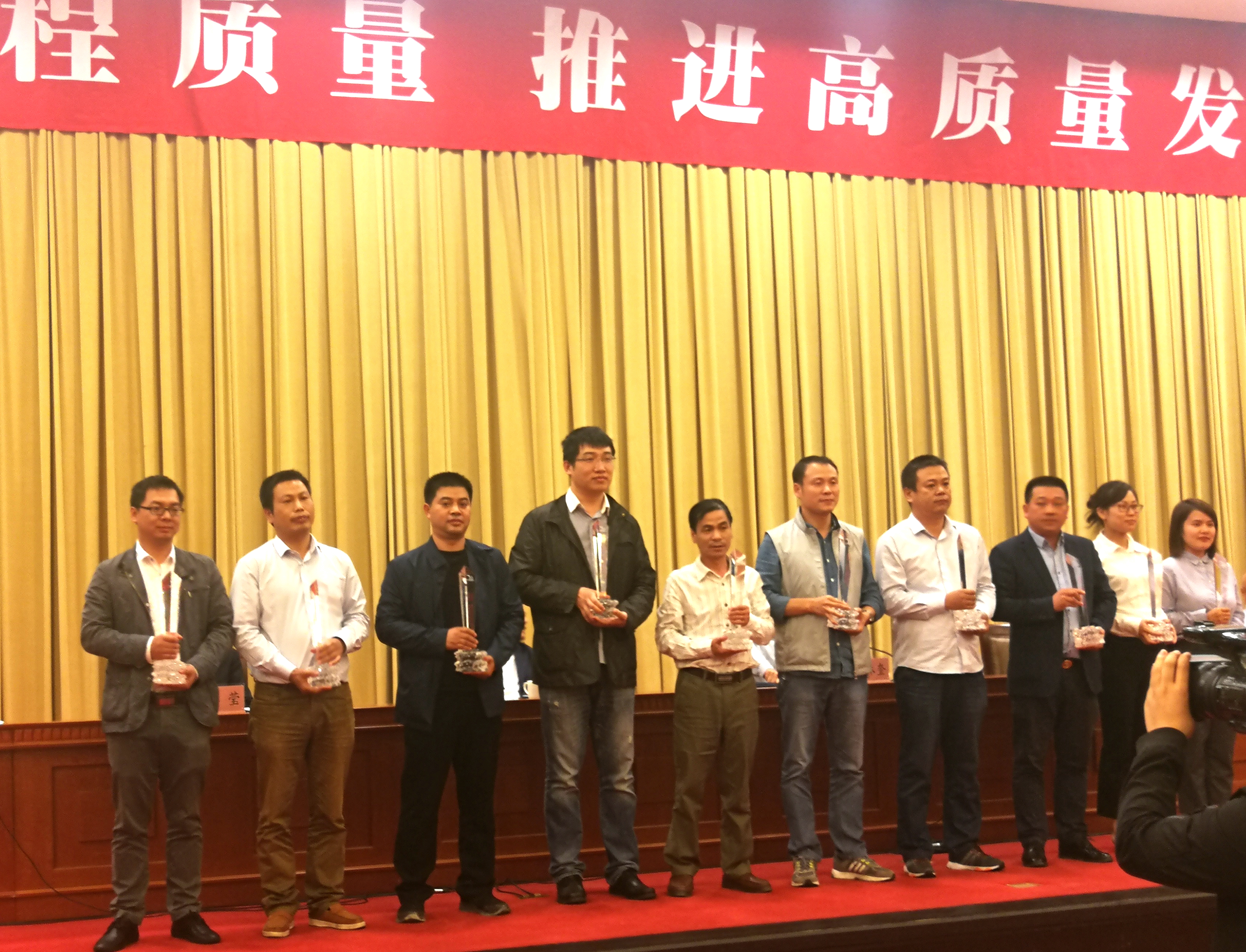 最后,會(huì)議在隆重?zé)崃业臍夥罩信e行了2018年度浙江省優(yōu)質(zhì)工程“錢江杯”頒獎(jiǎng)儀式,133家承建獲獎(jiǎng)單位代表和20家參建獲獎(jiǎng)單位代表依次登臺(tái)領(lǐng)獎(jiǎng)。我公司承建的朗城公館Ⅰ標(biāo)段、永寧公館二期二標(biāo)、中國移動(dòng)杭州信息技術(shù)產(chǎn)品生產(chǎn)基地一期一階段等三項(xiàng)工程受到表彰。