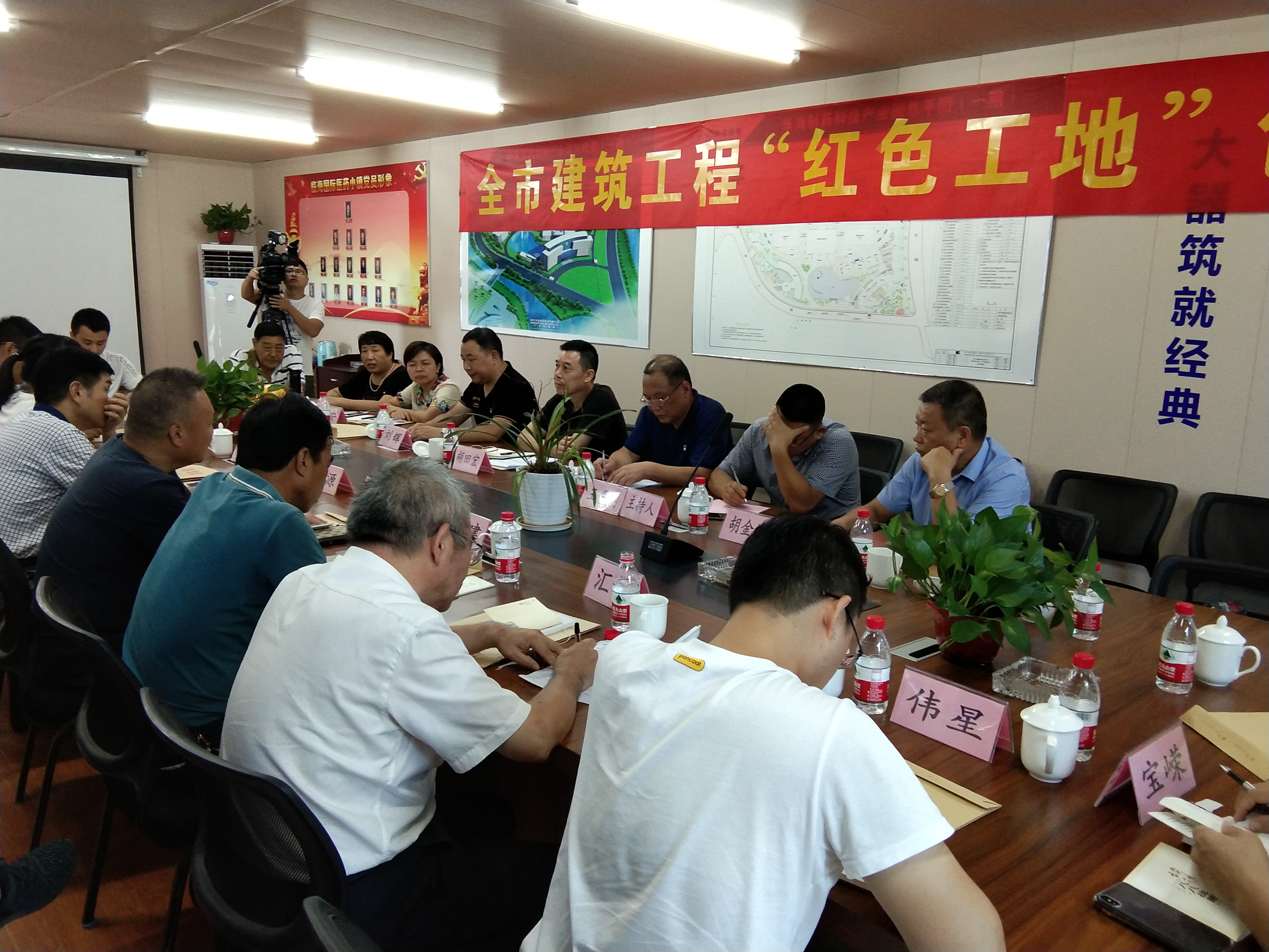 現(xiàn)場(chǎng),市所有一級(jí)建筑企業(yè)、部分二級(jí)建筑企業(yè)黨支部負(fù)責(zé)人參觀(guān)了大經(jīng)公司華海項(xiàng)目部的黨員活動(dòng)室,了解“紅色工地”的創(chuàng)建情況。早在華海項(xiàng)目剛開(kāi)始動(dòng)工之時(shí),市建設(shè)規(guī)劃局就選取這里作為試點(diǎn)開(kāi)展“紅色工地”創(chuàng)建。