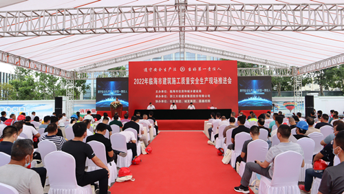6月30日,由臨海市住房和城鄉(xiāng)建設(shè)局主辦、集團(tuán)承辦的“2022年度臨海市建筑施工質(zhì)量安全生產(chǎn)現(xiàn)場推進(jìn)會”在臨??偛可虅?wù)區(qū)(城投-交投-磊鑫工區(qū))召開。